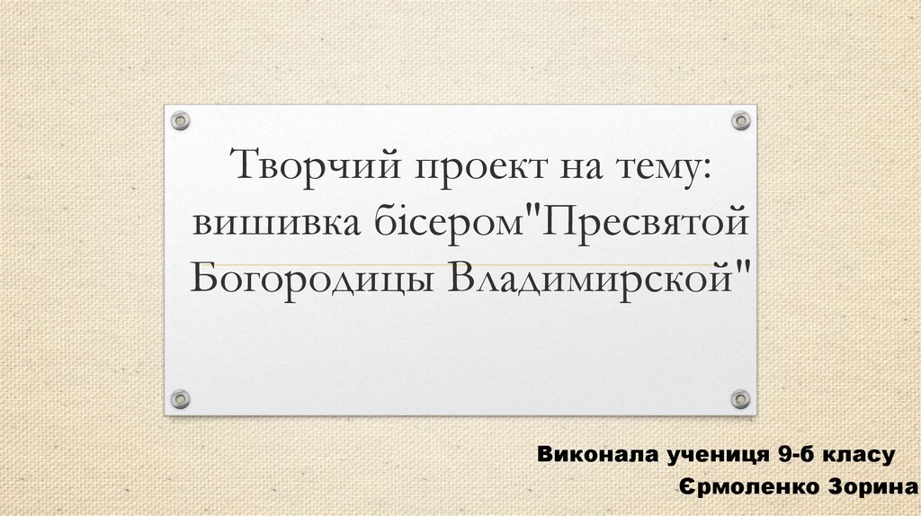 Творчий проект на тему:вишивка бісером"Пресвятой