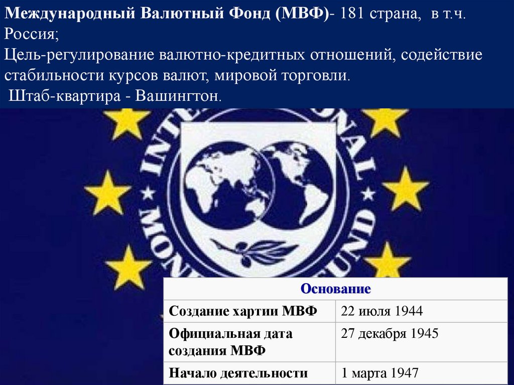 движения; создан по инициативе США.