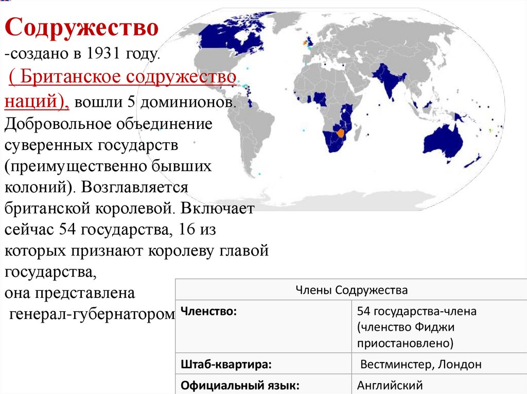 Содружество-создано в 1931 году.