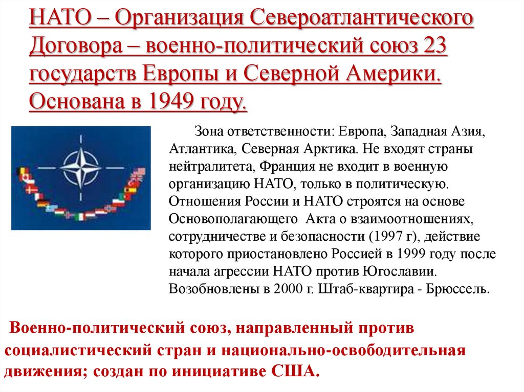 НАТО – Организация СевероатлантическогоДоговора – военно-политический союз 23