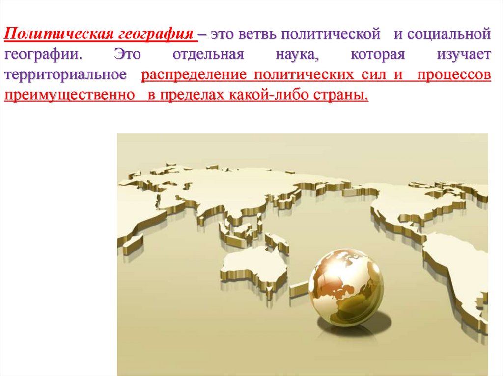 Политическая география – это ветвь политической и социальнойгеографии.