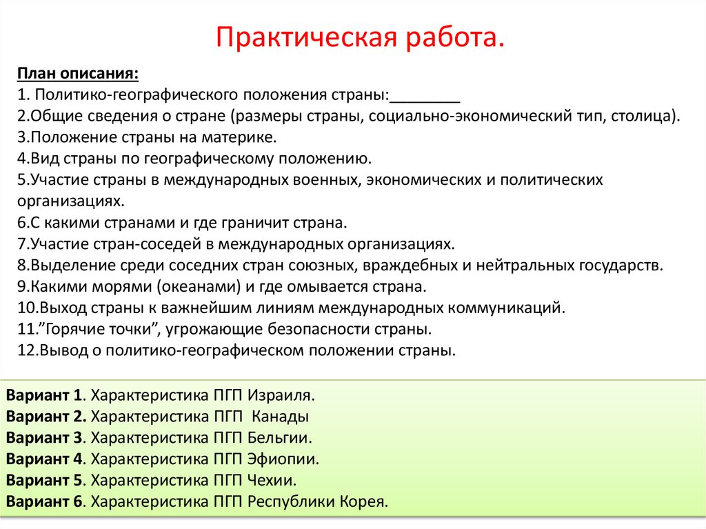 Вариант 1. Характеристика ПГП Израиля.