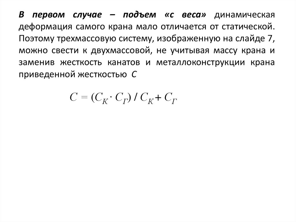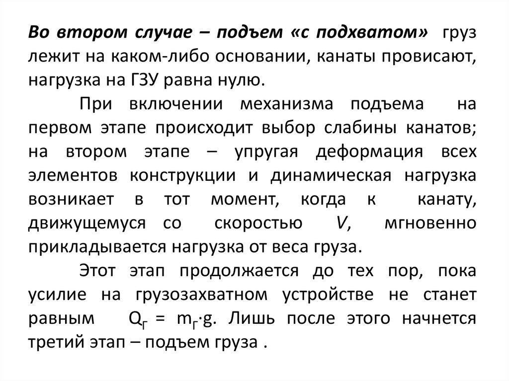 В первом случае – подъем «с веса» динамическаядеформация самого крана мало отличается от статической.