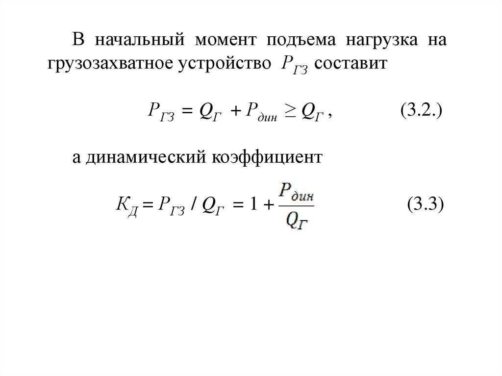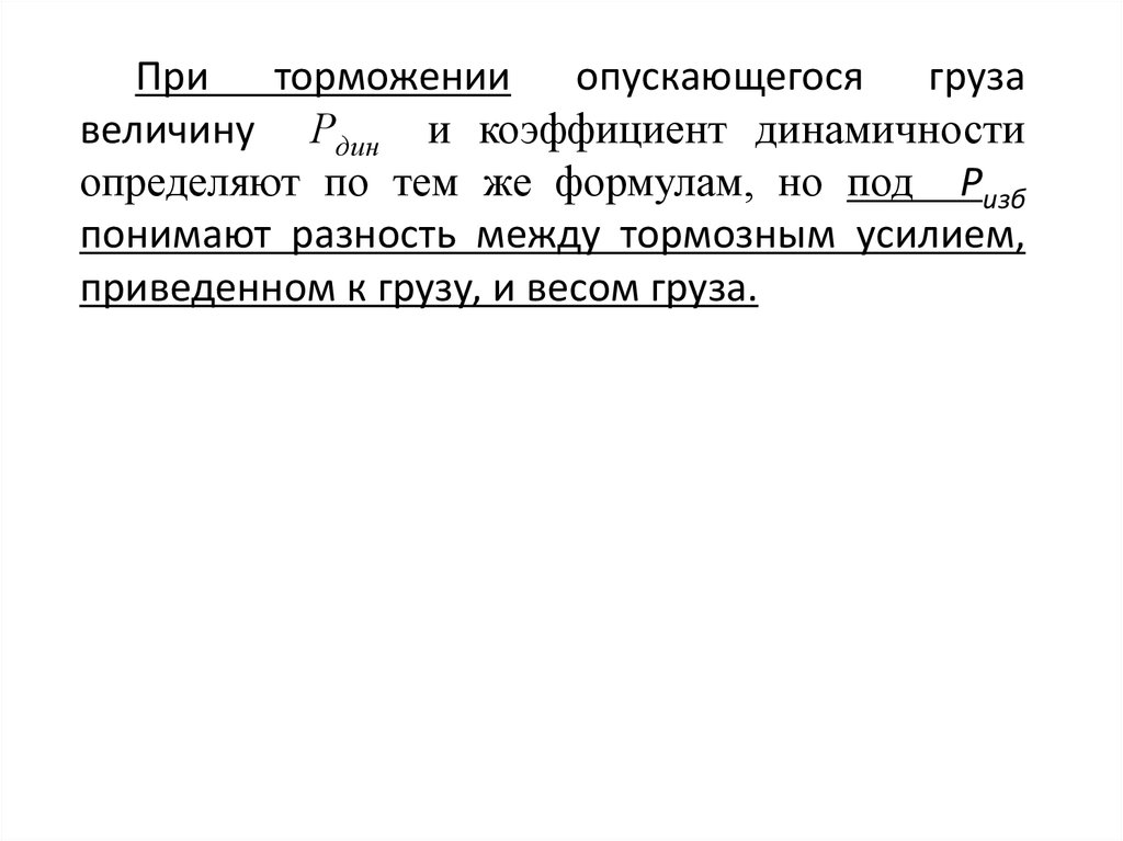 При торможении опускающегося грузавеличину Рдин и коэффициент динамичности
