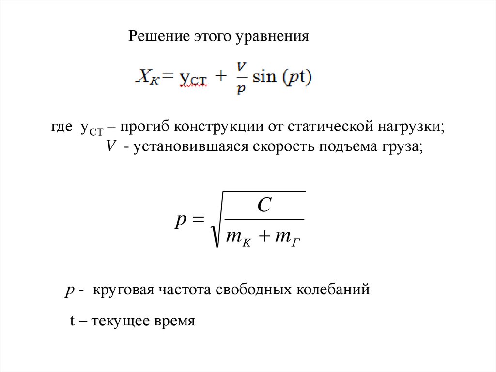 Решение этого уравнениягде уСТ – прогиб конструкции от статической нагрузки;