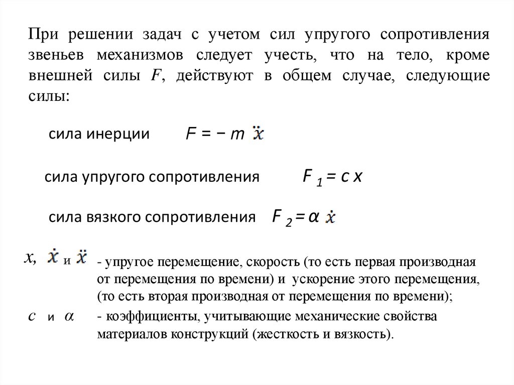 При решении задач с учетом сил упругого сопротивлениязвеньев механизмов следует учесть, что на тело, кроме