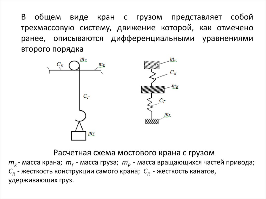 В общем виде кран с грузом представляет собойтрехмассовую систему, движение которой, как отмечено