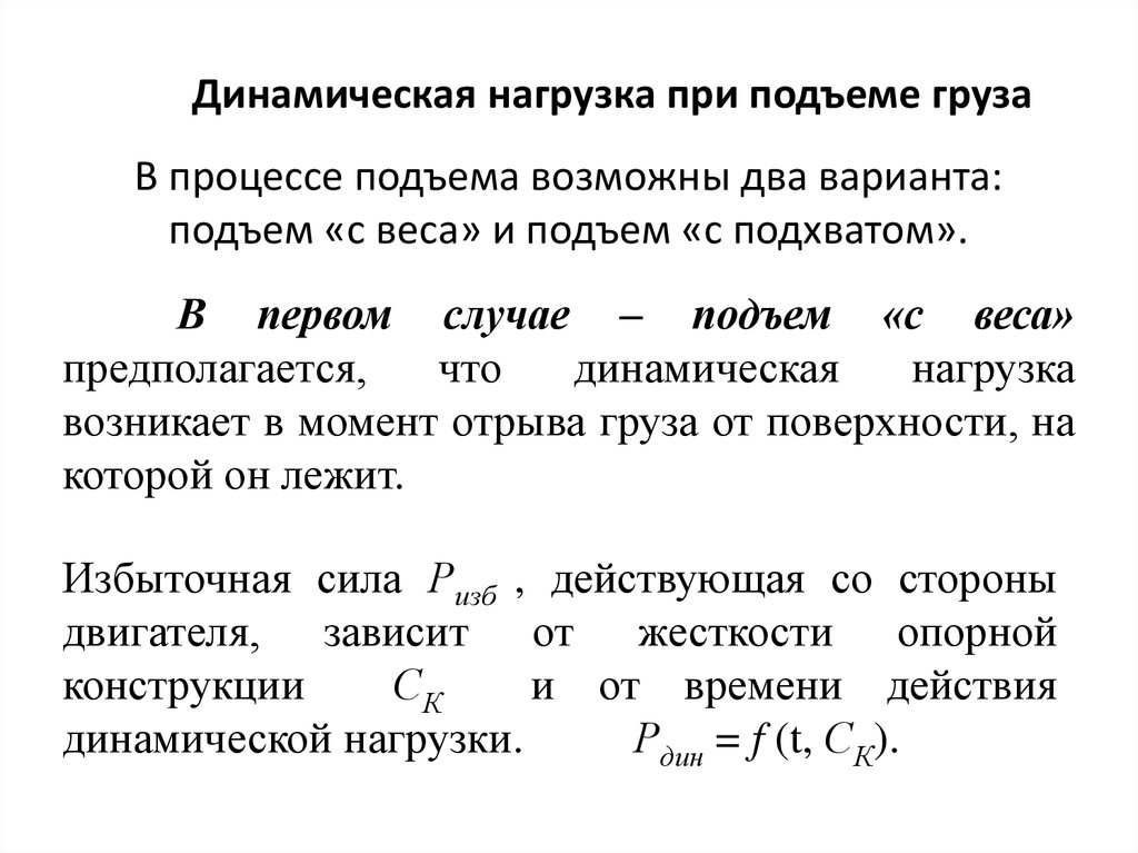 Динамическая нагрузка при подъеме грузаВ процессе подъема возможны два варианта: