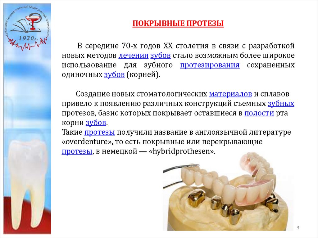 ПОКРЫВНЫЕ ПРОТЕЗЫВ середине 70-х годов XX столетия в связи с разработкой