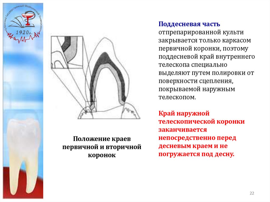 телескопическая коронка упирается в первичную в пришеечной зоне
