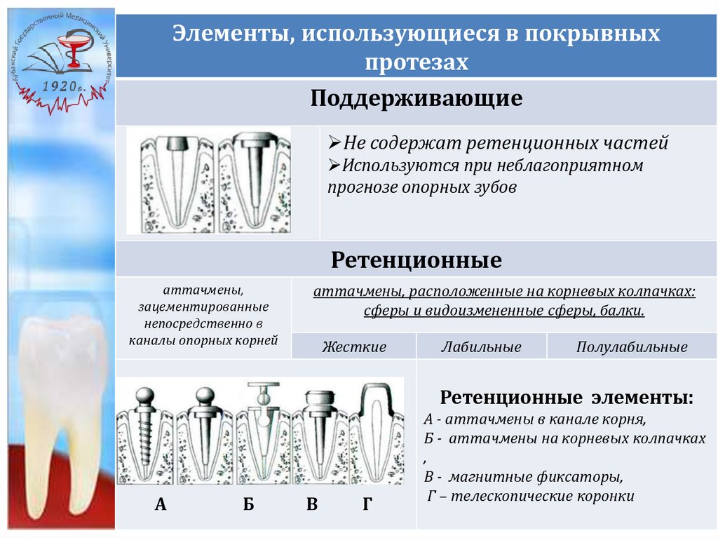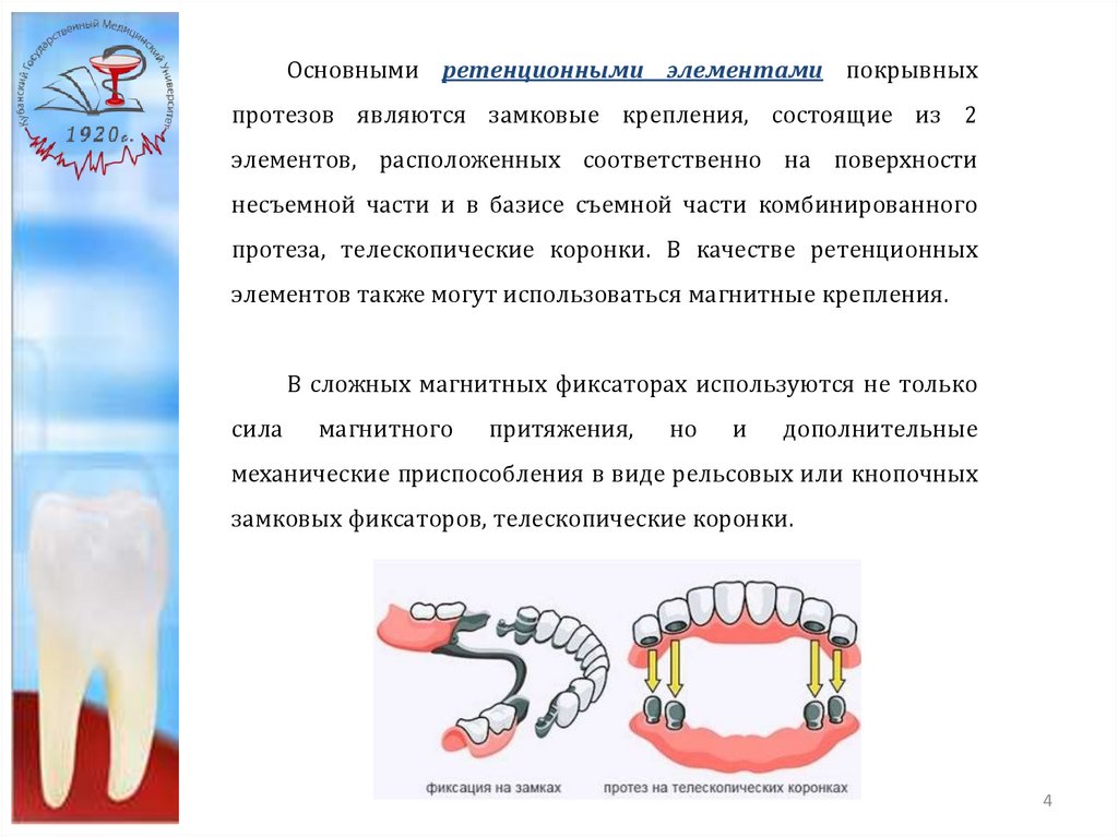 Основными ретенционными элементами покрывныхпротезов являются замковые крепления, состоящие из 2