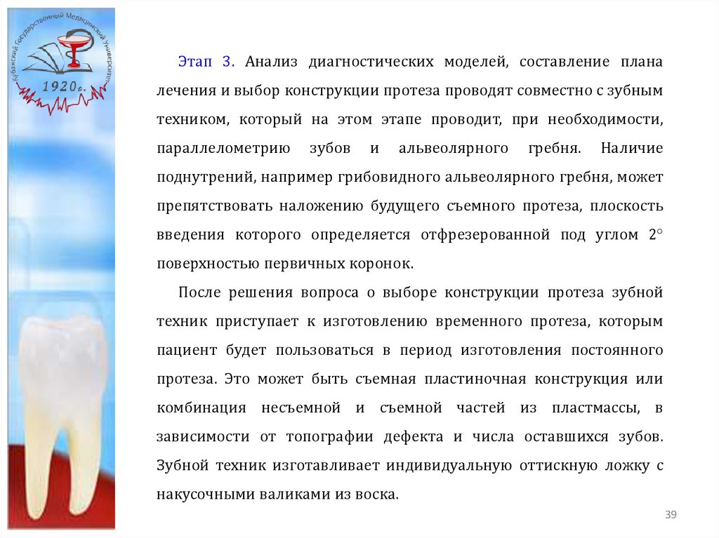 протеза, гигиеническим мероприятиям. Уведомляют о необходимости