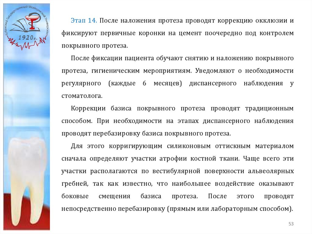 Лекция № 11по модулю «Зубопротезирование сложное»