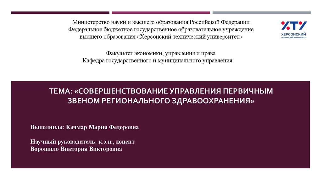 ТЕМА: «СОВЕРШЕНСТВОВАНИЕ УПРАВЛЕНИЯ ПЕРВИЧНЫМЗВЕНОМ РЕГИОНАЛЬНОГО ЗДРАВООХРАНЕНИЯ»