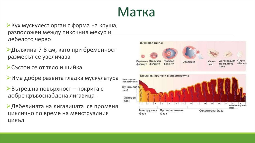 Матка⮚Кух мускулест орган с форма на круша,