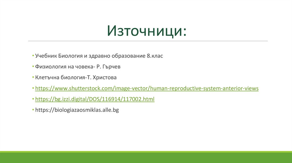 Източници:• Учебник Биология и здравно образование 8.клас