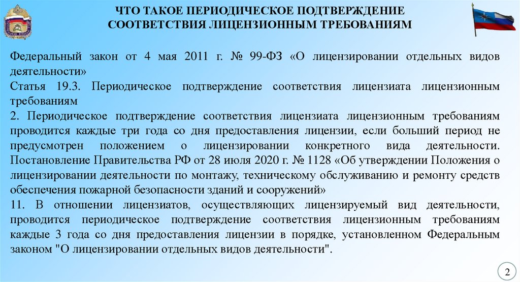 2. Периодическое подтверждение соответствия лицензиата лицензионным требованиям