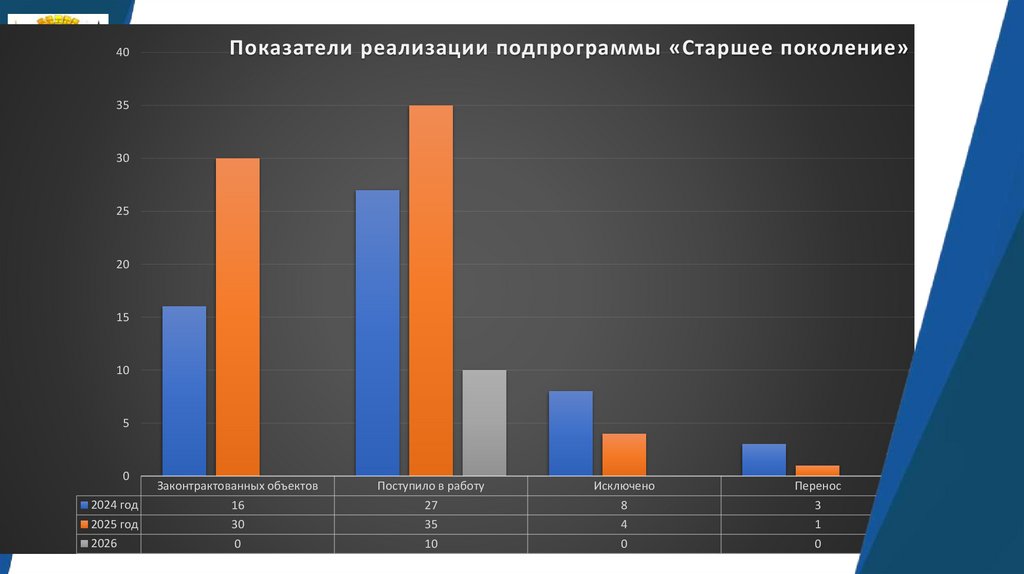 40Показатели реализации подпрограммы «Старшее поколение»