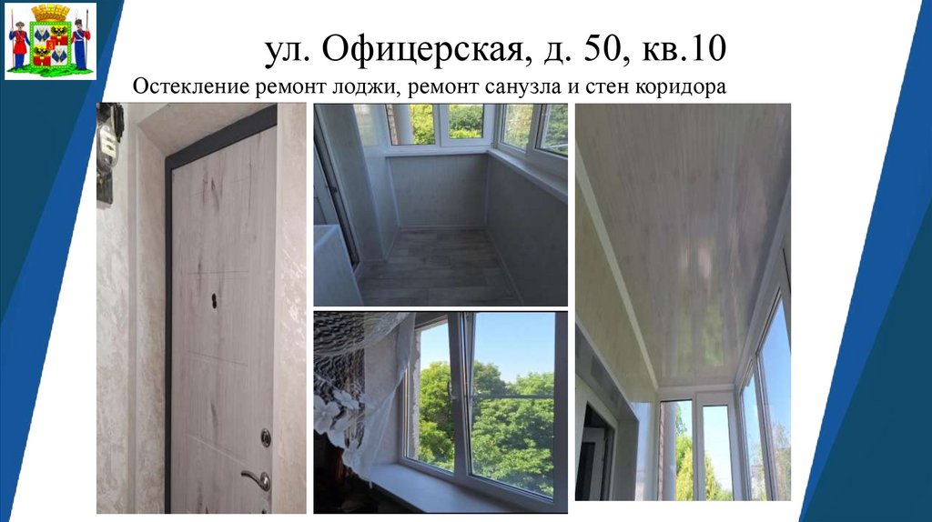 ул. Офицерская, д. 50, кв.10Остекление ремонт лоджи, ремонт санузла и стен коридора