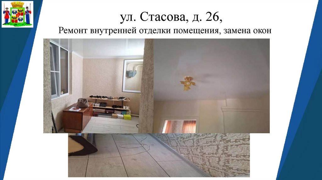 ул. Стасова, д. 26,Ремонт внутренней отделки помещения, замена окон