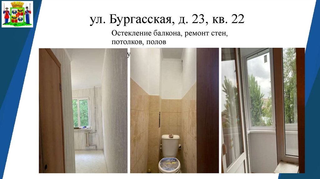 ул. Бургасская, д. 23, кв. 22Остекление балкона, ремонт стен,
