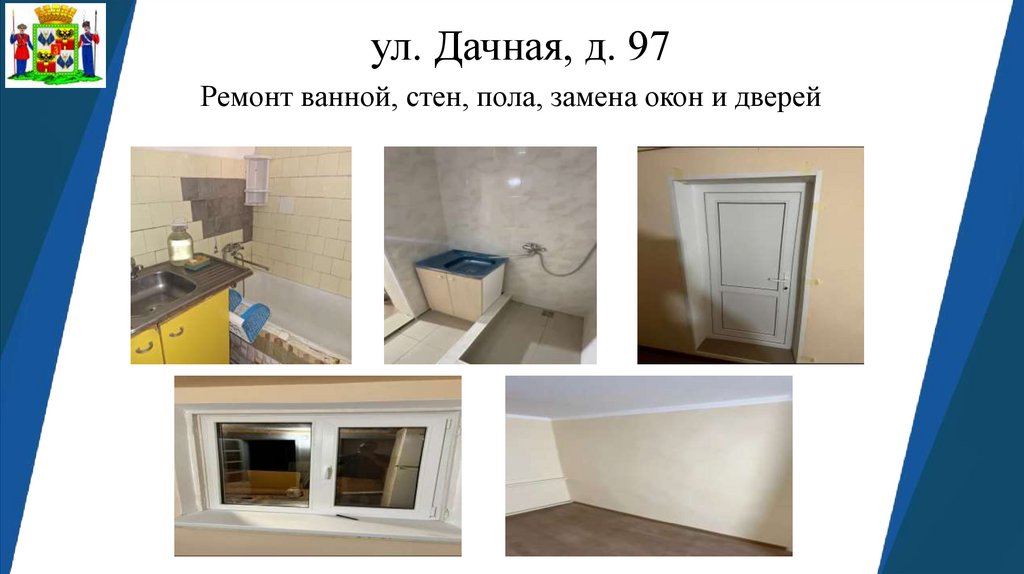 ул. Дачная, д. 97Ремонт ванной, стен, пола, замена окон и дверей