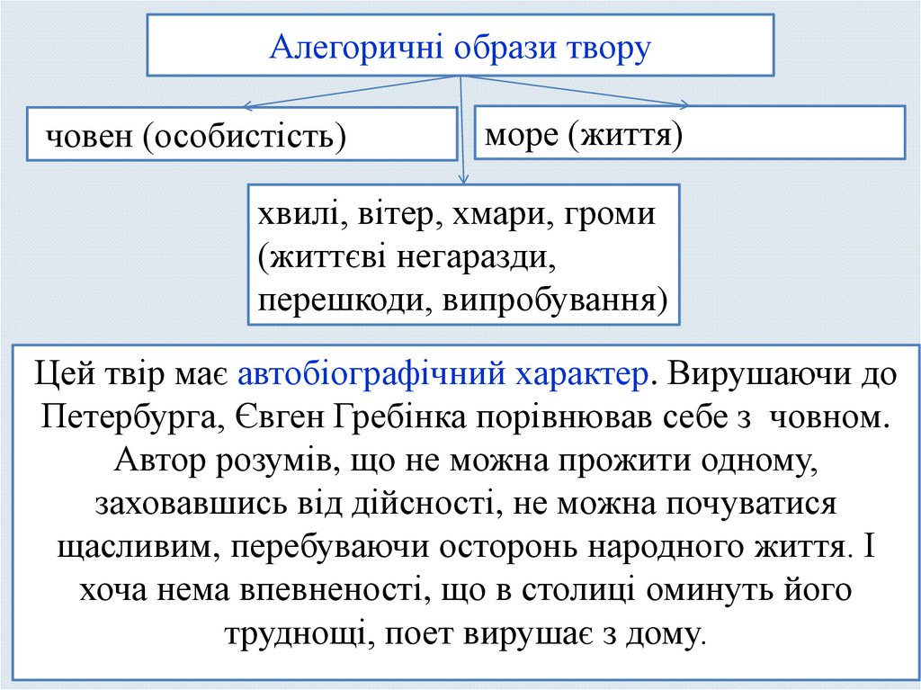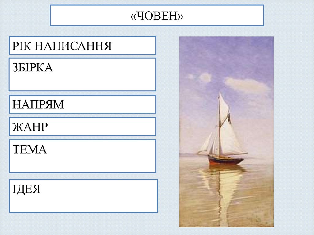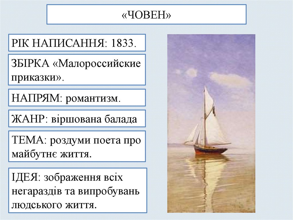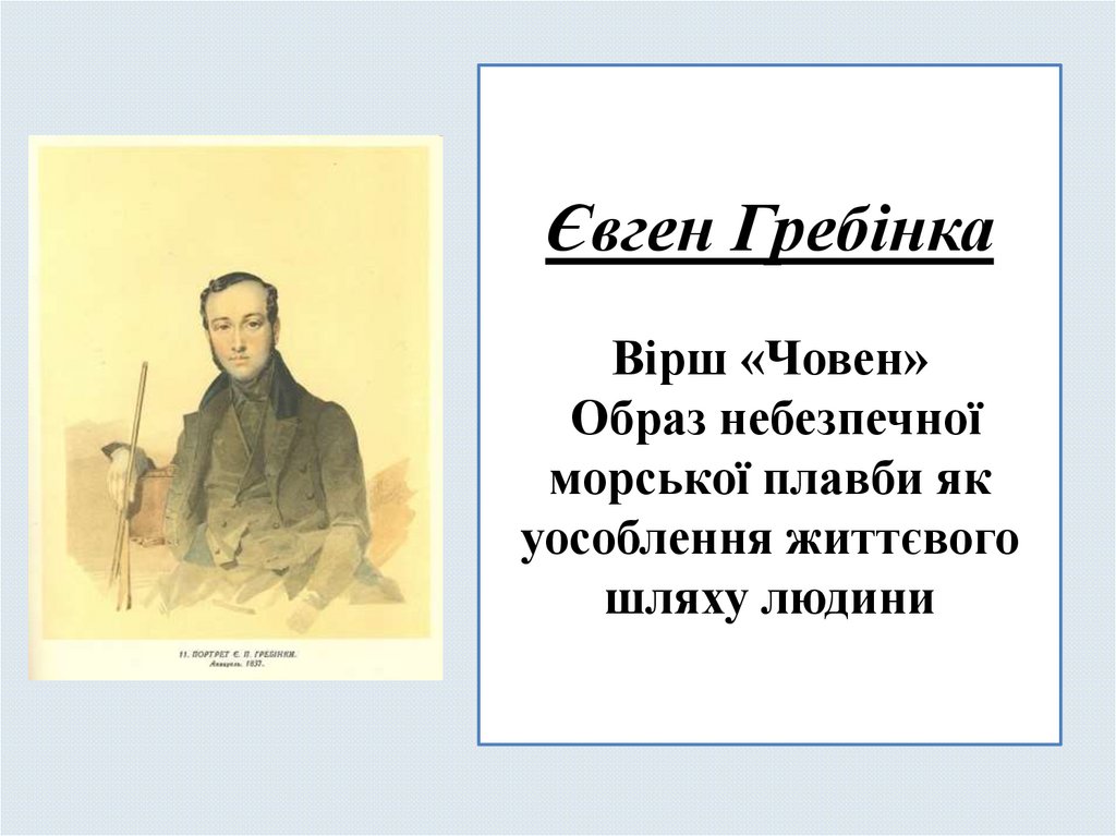 1. Євген Гребінка Вірш «Човен» Образ небезпечної морської плавби як уособлення життєвого шляху людини