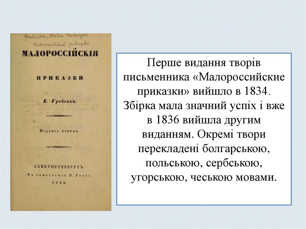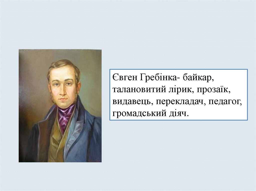 Євген Гребінка- байкар,талановитий лірик, прозаїк,
