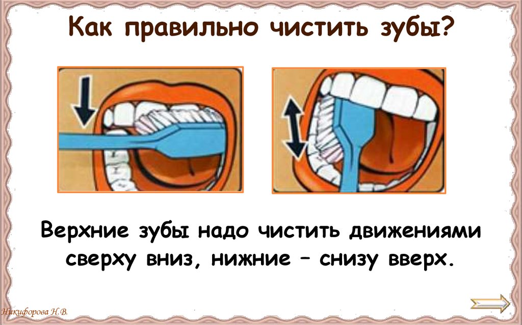 Как правильно чистить зубы?Верхние зубы надо чистить движениями