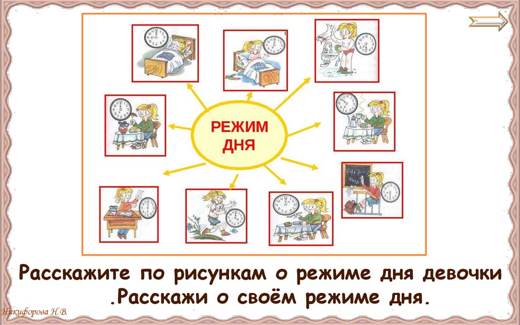 Расскажите по рисункам о режиме дня девочки.Расскажи о своём режиме дня.