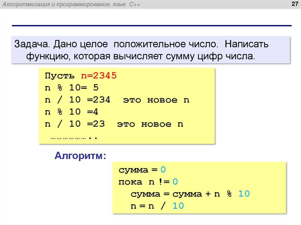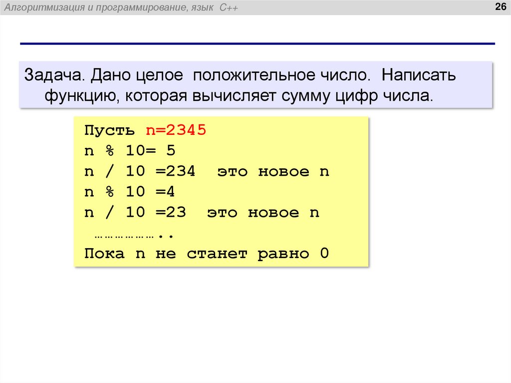 Алгоритмизация и программирование, язык C++Пример