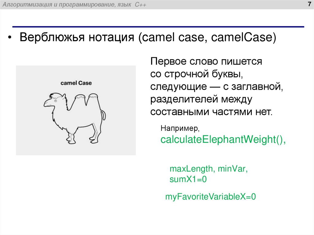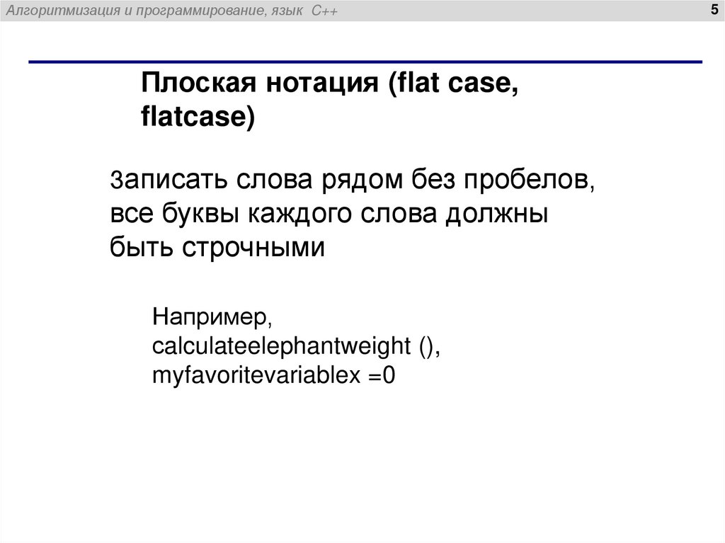 Алгоритмизация и программирование, язык C++Плоская нотация (flat case,