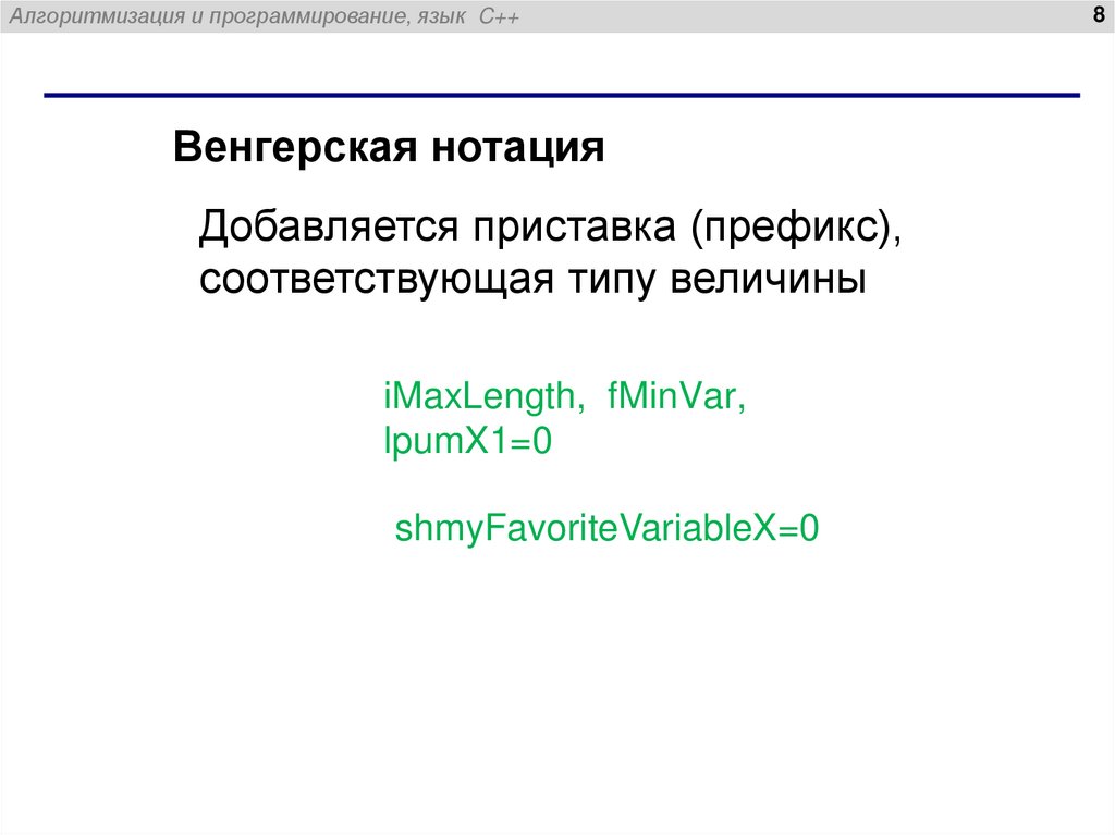 Алгоритмизация и программирование, язык C++Венгерская нотация