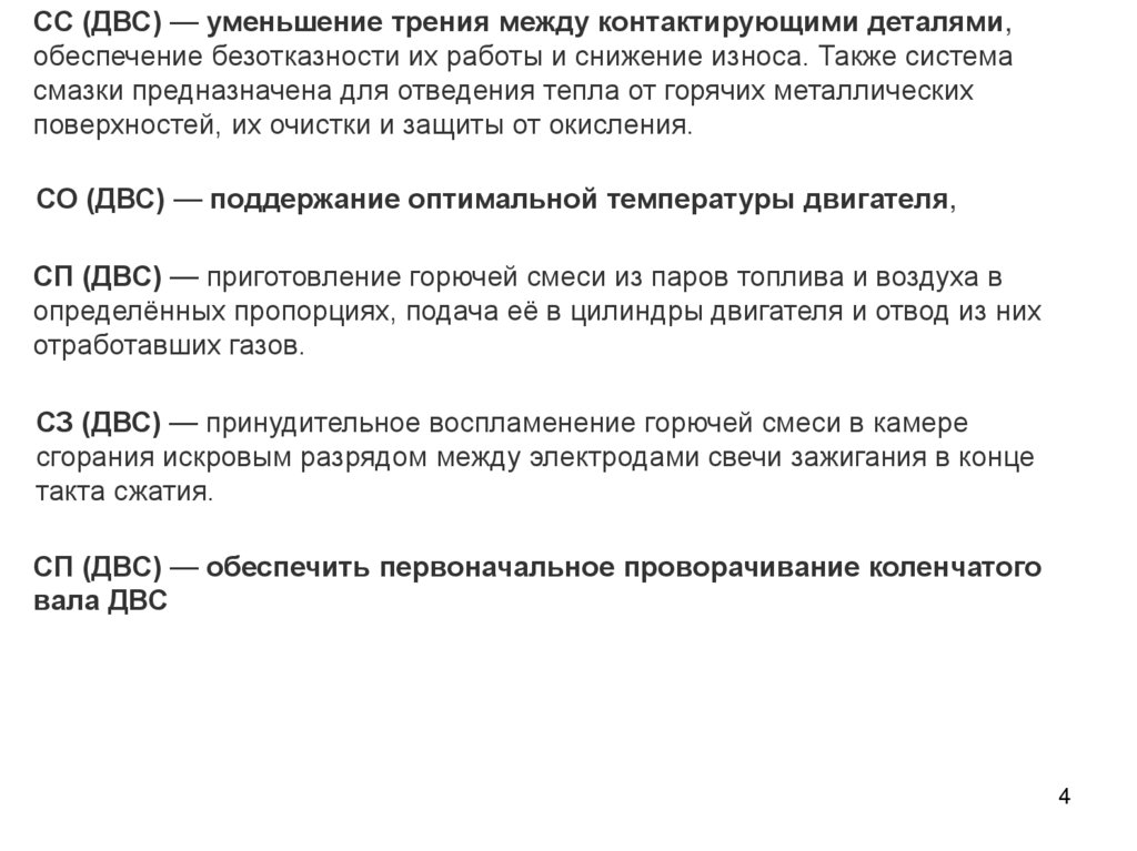 СС (ДВС) — уменьшение трения между контактирующими деталями,обеспечение безотказности их работы и снижение износа. Также система