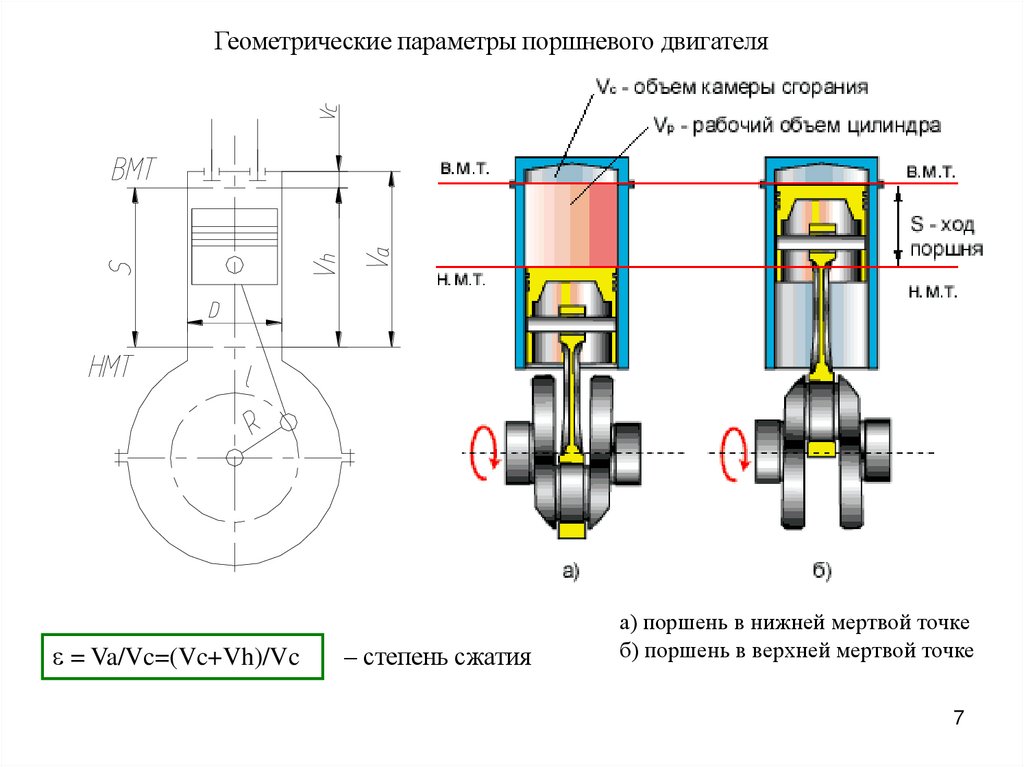 Геометрические параметры поршневого двигателя= Va/Vc=(Vc+Vh)/Vc