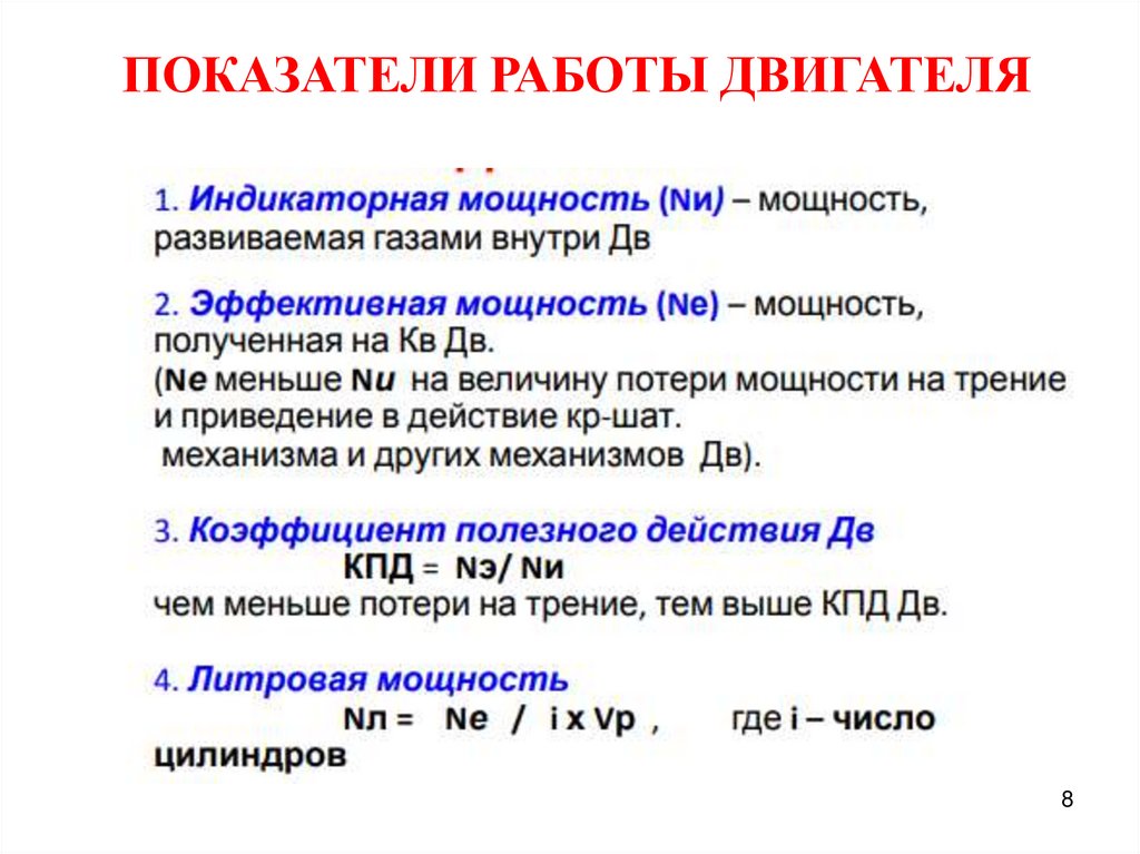 ПОКАЗАТЕЛИ РАБОТЫ ДВИГАТЕЛЯ8