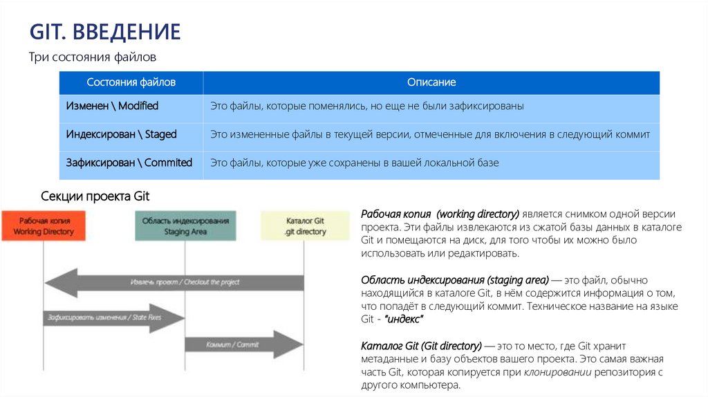 GIT. ВВЕДЕНИЕТри состояния файлов