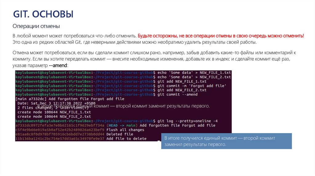 после него выполнить команду push попытаетесь вы, то ваш push будет отклонён. Вам придётся сначала получить изменения и