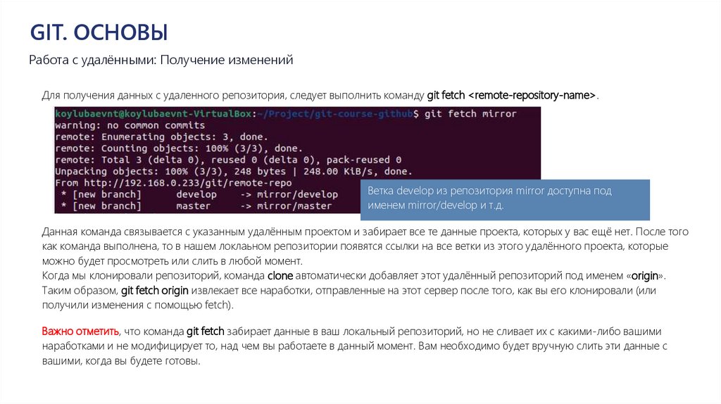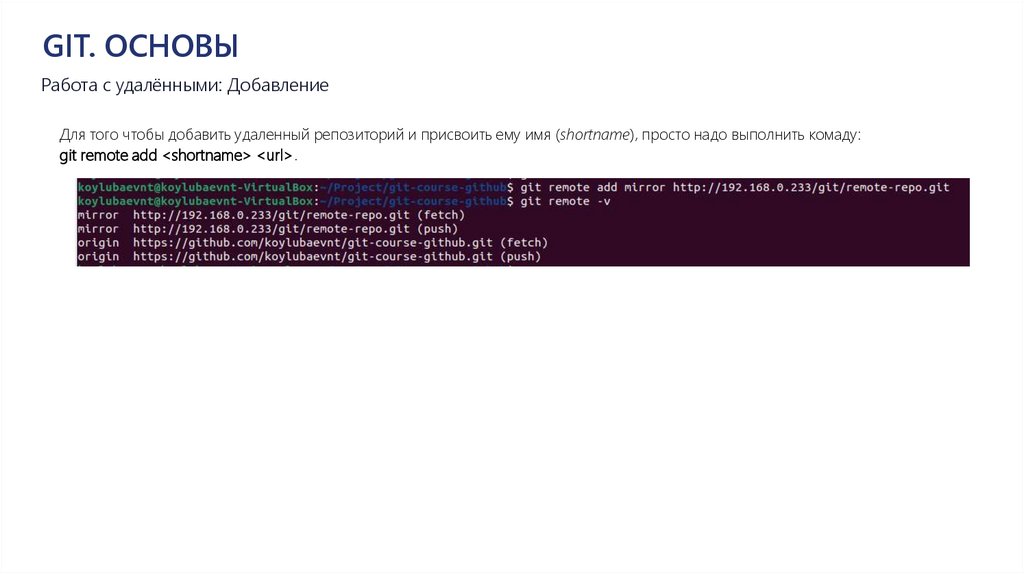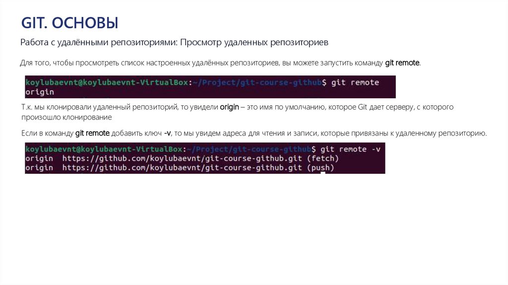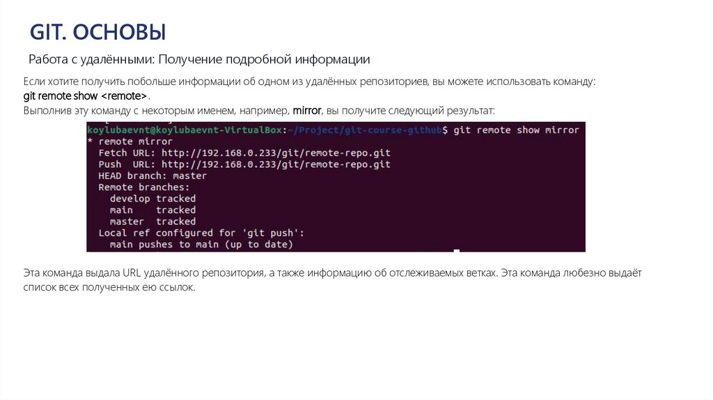 GIT. ОСНОВЫРабота с удалёнными: Получение подробной информации