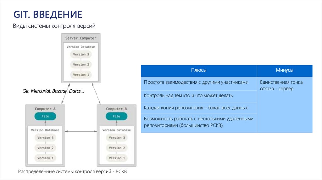 GIT. ВВЕДЕНИЕВиды системы контроля версий