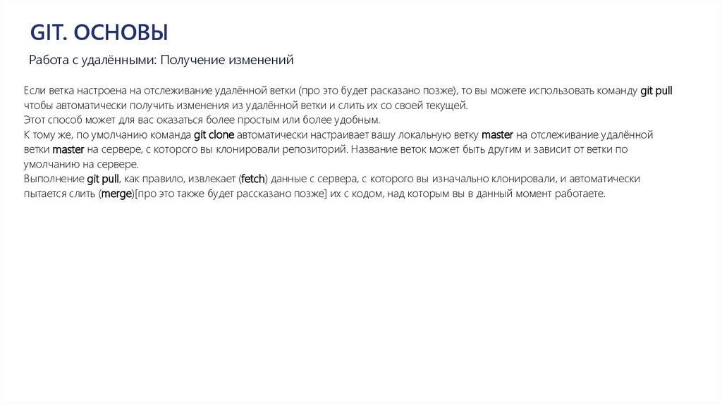 пытается слить (merge)[про это также будет рассказано позже] их с кодом, над которым вы в данный момент работаете.