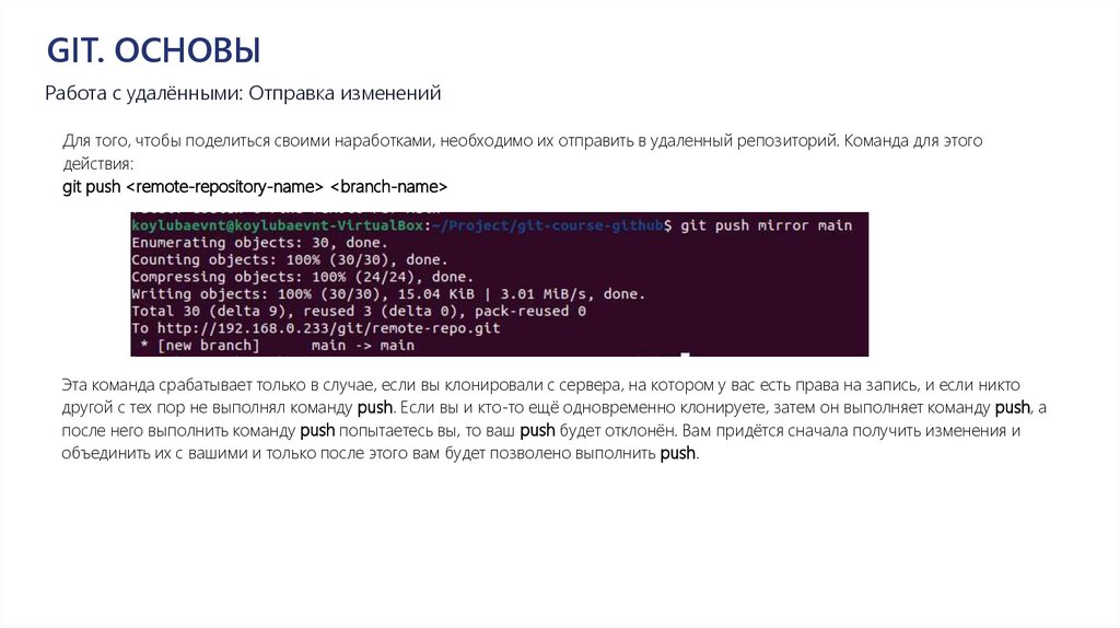 GIT. ОСНОВЫРабота с удалёнными: Отправка изменений