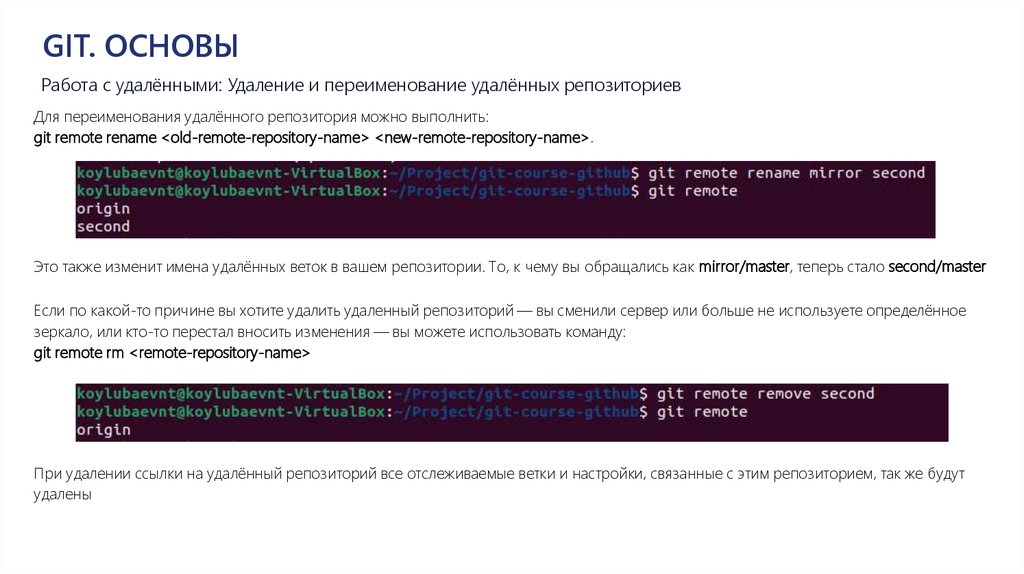 GIT. ОСНОВЫРабота с удалёнными: Удаление и переименование удалённых репозиториев