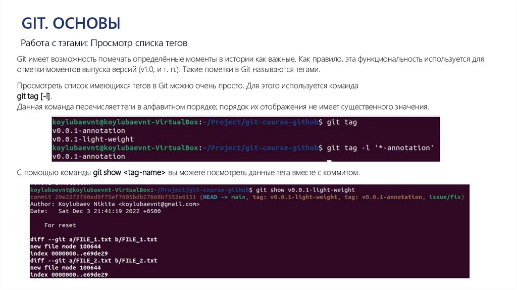 GIT. ОСНОВЫРабота с тэгами: Просмотр списка тегов