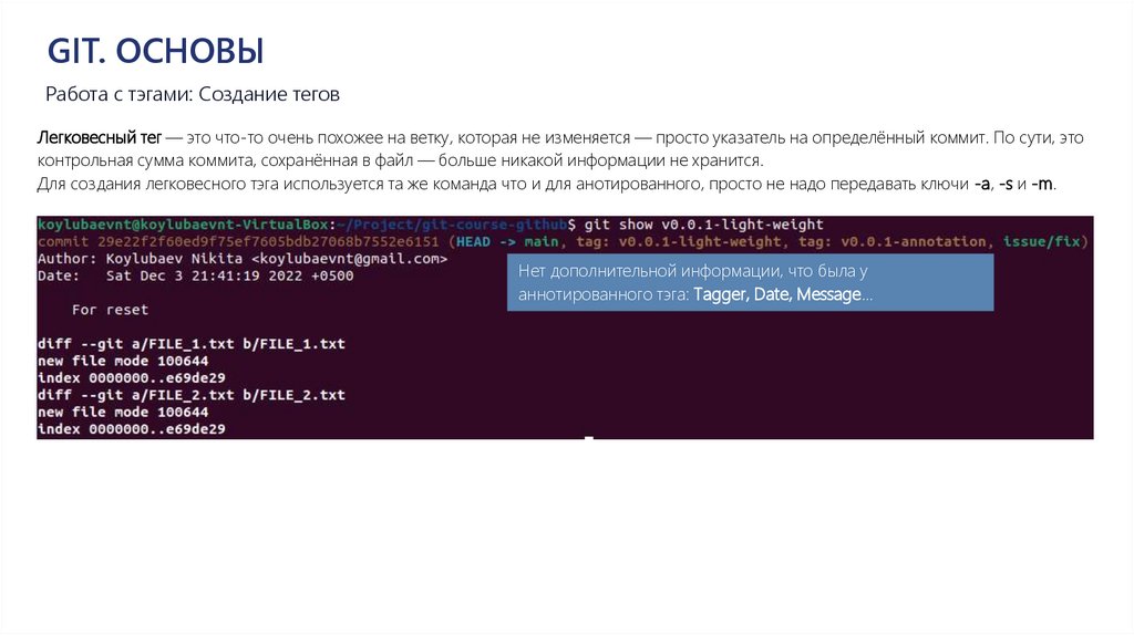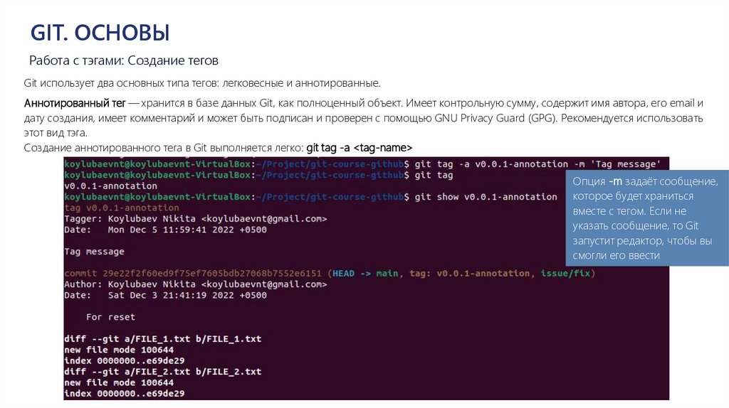 GIT. ОСНОВЫРабота с тэгами: Создание тегов