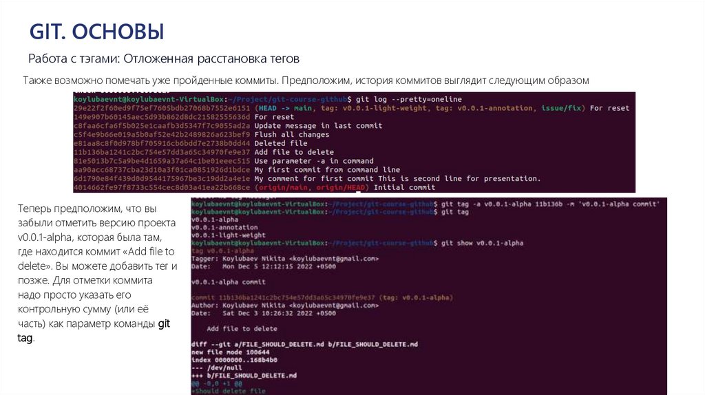 GIT. ОСНОВЫРабота с тэгами: Отложенная расстановка тегов