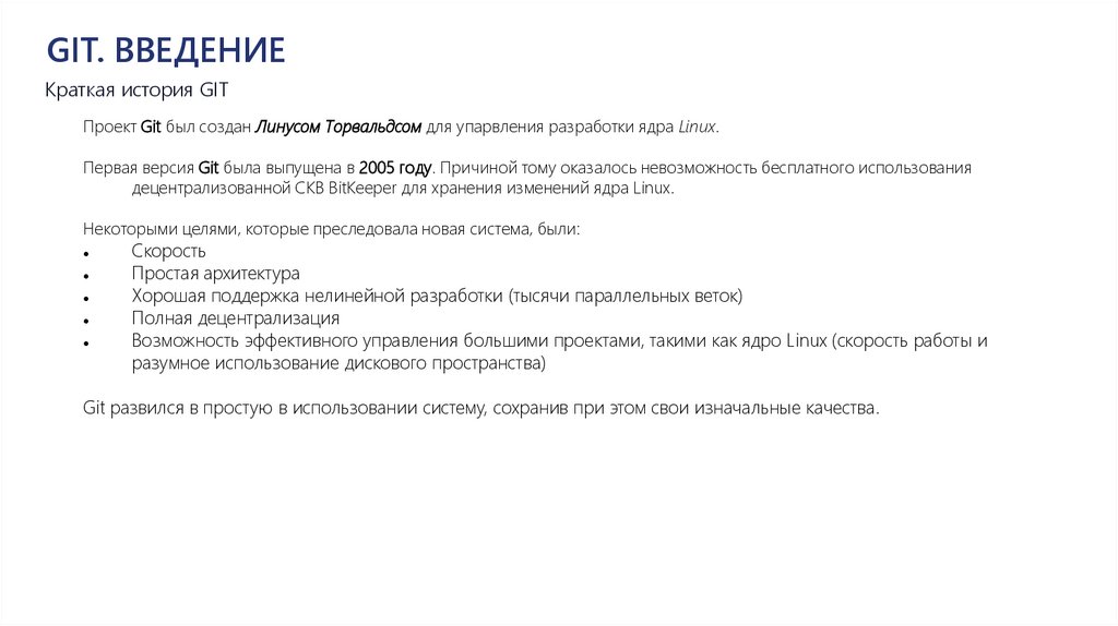 GIT. ВВЕДЕНИЕКраткая история GIT