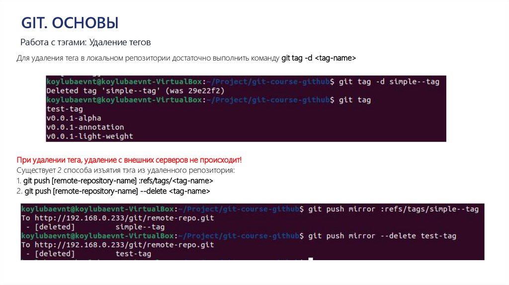 GIT. ОСНОВЫРабота с тэгами: Удаление тегов