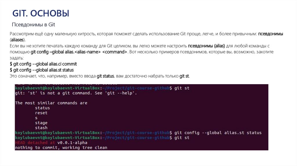 Рассмотрим ещё одну маленькую хитрость, которая поможет сделать использование Git проще, легче, и более привычным: псевдонимы