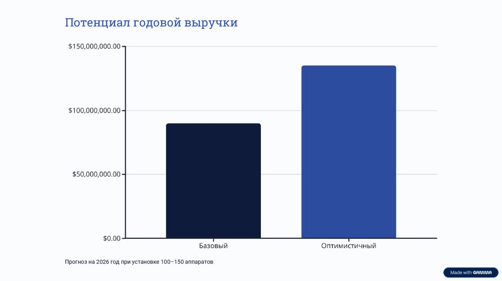 Потенциал годовой выручкиПрогноз на 2026 год при установке 100–150 аппаратов